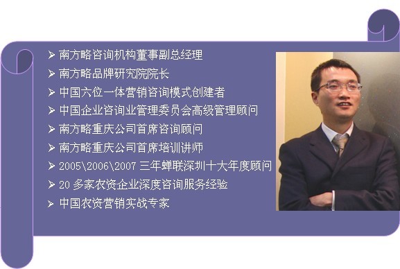 南方略營銷管理咨詢有限公司是專注于農資行業(yè)的高價值營銷管理咨詢公司,公司擁有顧問師80余人,核心成員是由市場營銷、系統(tǒng)工程、清華MBA等博士和碩士組成的明星團隊。是中國本土真正擁有一支專職的、高水平的營銷管理咨詢專家、策劃專家、戰(zhàn)略專家、人力資源管理咨詢專家及培訓師團隊的咨詢公司。先后為超過100家的化肥、農藥、飼料、種子企業(yè)提供營銷戰(zhàn)略、品牌規(guī)劃、產品策劃、渠道規(guī)劃、市場推廣、形象設計等咨詢服務。