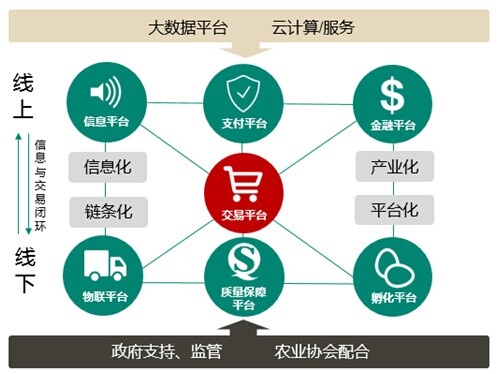 南方略項(xiàng)目組通過訪問國內(nèi)農(nóng)業(yè)領(lǐng)域頂尖學(xué)者,系統(tǒng)分析農(nóng)業(yè)產(chǎn)業(yè)問題、產(chǎn)業(yè)政策、消費(fèi)市場及發(fā)展趨勢,結(jié)合清華同方以IT信息化為主的多方產(chǎn)業(yè)優(yōu)勢,認(rèn)為同方只有通過互聯(lián)網(wǎng)思維多方連接,建立以生態(tài)農(nóng)產(chǎn)品B2B交易平臺為核心的開放式綜合性平臺,線上線下有機(jī)緊密結(jié)合,創(chuàng)新農(nóng)產(chǎn)品現(xiàn)代流通服務(wù)體系,為廣大新農(nóng)人及商家或消費(fèi)者提供全方位服務(wù),才能有效落地并打通整體產(chǎn)業(yè)鏈。