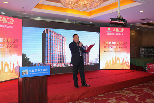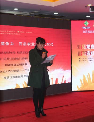下午3點,發(fā)布會正式開始。會議一開始,作為本次論壇的主辦方,龍鑫廣場的開發(fā)及運營商的湖北供銷宜瑞豐農(nóng)資大市場有限公司總經(jīng)理張家榮先生對本次論壇致以開幕致詞。致詞中進一步表明了對龍鑫廣場的建設(shè)及日后全新的運營模式進行了簡明扼要的介紹,從硬件及軟件兩方面描繪了廣場宏偉藍圖。同時,著重提到為將來向入駐園區(qū)的商戶提供更多的增值服務(wù),促進商家經(jīng)營的轉(zhuǎn)型升級,特聘深圳市南方略營銷管理咨詢公司作為運營戰(zhàn)略顧問,將廣場打造成聚焦農(nóng)業(yè)相關(guān)領(lǐng)域并融合電子商務(wù)的綜合性服務(wù)平臺。張家榮先生,對龍鑫廣場日后的成功運營在致詞中表現(xiàn)出了強烈信心。