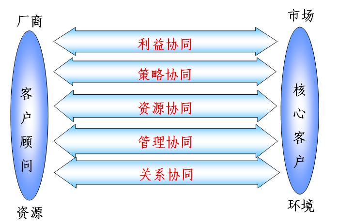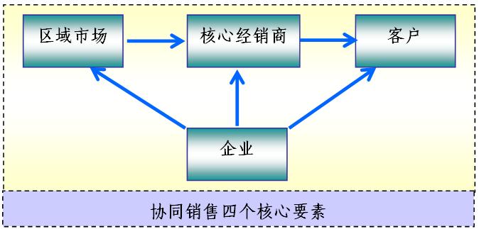 區(qū)域市場、核心經(jīng)銷商、客戶、客戶顧問是實施協(xié)同銷售業(yè)務模式的四個核心要素。