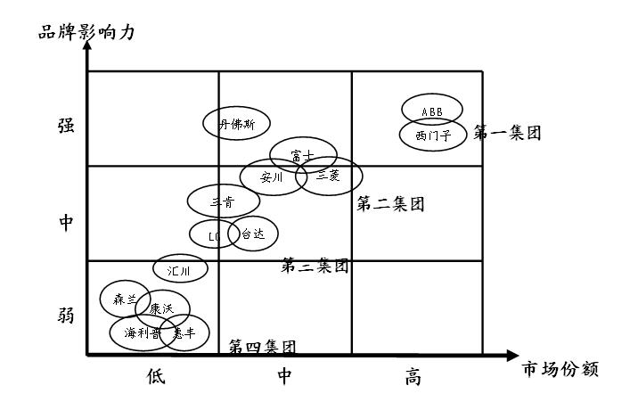 以ABB、西門子、丹佛斯為代表的為第一集團;以富士、三菱、安川為代表的日本企業(yè)居于第二集團;以臺達、LG為代表的臺韓以及部分國內(nèi)品牌將居于第三集團;其他國內(nèi)品牌居于第四集團。