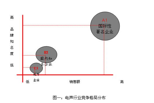 5、品牌在低端混戰(zhàn)、中高端上不去:南方略項目組經(jīng)過詳細的外部市場調(diào)研發(fā)現(xiàn),電聲行業(yè)的競爭格局呈現(xiàn)出兩級分化態(tài)勢,80%的龐大市場被國外頂尖品牌無可爭議的占領(lǐng),僅占20%市場份額被國內(nèi)一批企業(yè)在低端混戰(zhàn)廝殺,有些國內(nèi)品牌極力奮起擠壓中端市場,但顯異常吃力?,F(xiàn)在的難題是繼續(xù)在低端市場搏擊分到更多份額還是率先進軍中高端市場?選擇后者是肯定的也是唯一的,如果不主動進軍中高端市場勢必會逐漸被邊緣化打入低端市場死角而被清除出競爭行列。(見圖一)