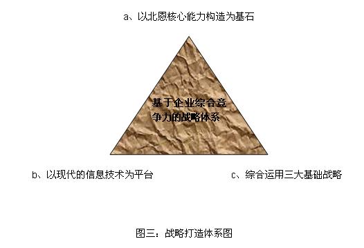 a、基于企業(yè)核心能力構(gòu)建的戰(zhàn)略:對國內(nèi)企業(yè)來講電聲行業(yè)生存易發(fā)展難,發(fā)展的瓶頸仍然來自自身核心能力的挑戰(zhàn)。世界變化的速度越來越快,企業(yè)戰(zhàn)略的制定也越來越強調(diào)本身的彈性和適應(yīng)性,更多體現(xiàn)是一種變化的戰(zhàn)略。對北恩電聲來講目前雖然有一定的市場地位,但更多源于市場的快速成長,“內(nèi)功”仍然很弱,面對下一階段殘酷的“肉搏戰(zhàn)”,北恩電聲核心能力的構(gòu)造成為目前發(fā)展中最緊急和最重要的課題。