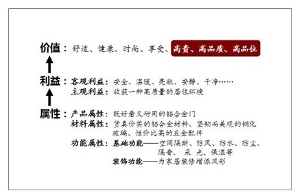 將“高貴、高品質(zhì)、高品位”作為皇派金門品牌的核心價值,將有利于皇派金門品牌內(nèi)涵的發(fā)散及外延的拓展;建立以“高”為核心的品牌核心價值體系,也為皇派金門品牌建立起一個其他競爭品牌難以逾越的競爭壁壘,為鋁門行業(yè)競爭版圖的重新規(guī)劃奠定了基礎(chǔ)。