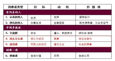 在消費者分析中,南方略發(fā)現(xiàn)皇派金門的消費者主要包括兩大人群:風頭主義者和成功者。這兩類人群顯性的差異表現(xiàn)在收入的差距,而隱性的差異則表現(xiàn)在各自不同的價值觀和消費形態(tài)上。