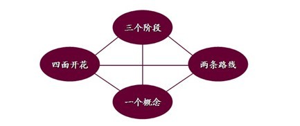 2、品牌傳播升級:一個概念、兩條線路、三個階段、四面開展