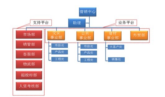 (1)以事業(yè)部形成利潤中心,業(yè)務(wù)平臺以不同應(yīng)用領(lǐng)域營銷拓展為主要職能,劃分為交安、公共、普材和國際貿(mào)易四大事業(yè)部。各個事業(yè)部根據(jù)銷售的規(guī)模和客戶的性質(zhì),又分設(shè)項(xiàng)目處、銷售處、工程處等不同部門。
