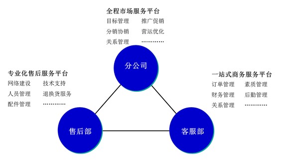 強(qiáng)化溝通,打造三大平臺(tái)以塑造歸屬感:通過分公司、客戶關(guān)系管理部、售后服務(wù)部三大服務(wù)平臺(tái)的打造,再輔之公司與經(jīng)銷商之間的持續(xù)信息溝通與互動(dòng),塑造“廠家一體”的歸屬感。