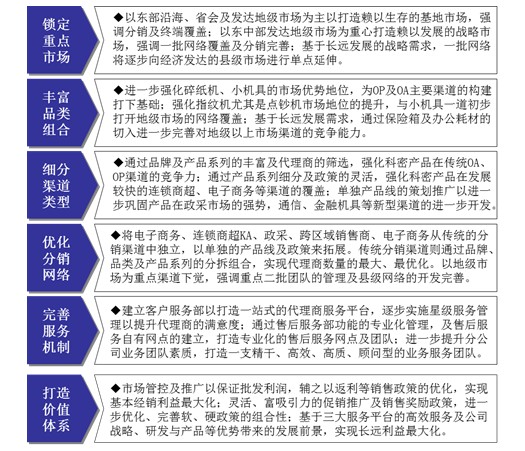 傳統(tǒng)分銷渠道:對(duì)于象OA、OP、通信、金融機(jī)具等不同類型的分銷渠道,科密可通過產(chǎn)品系列的科學(xué)規(guī)劃、代理商的優(yōu)化選擇、市場(chǎng)的嚴(yán)格管控來(lái)建立高覆蓋率、扁平化的分銷渠道結(jié)構(gòu)。