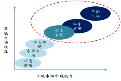 南方略顧問團(tuán)隊(duì)在對各主要區(qū)域市場進(jìn)行調(diào)研分析后,按照區(qū)域市場發(fā)展?fàn)顩r和中城在區(qū)域市場的實(shí)力兩個主要因素,對區(qū)域市場進(jìn)行劃分,劃分為根據(jù)地市場、重點(diǎn)市場、發(fā)展市場三個等級。