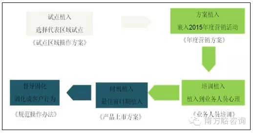 2、用年度營銷方案固化,通過年度營銷方案實施植入,在制定2015年度的營銷方案中,在年度方案中,把目標分解到人、分解到客戶、分解到日期。把設計方案融入到年度方案的每一個板塊。