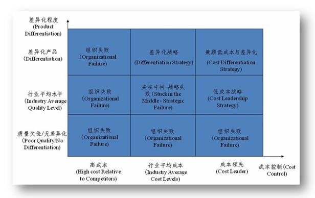 ?。?)、平衡產(chǎn)品差異化與成本控制。確保兩方面都至少要高于行業(yè)平均標(biāo)準(zhǔn)的基礎(chǔ)之上,再去追求在其中一個方面或兩方面都做到更好,以此來追求企業(yè)的做大、做強(qiáng)。而不是“瘸腿跑路”,為將來的發(fā)展埋下隱患。