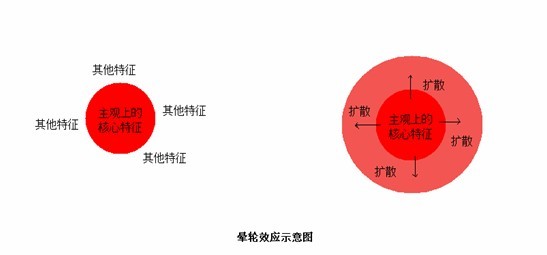 暈輪效應(yīng)的具體概念最早出現(xiàn)在人力資源方面的研究中(1920),隨后,許多學(xué)者又從各方面對暈輪效應(yīng)展開了深入了解。暈輪效應(yīng),又稱“光環(huán)效應(yīng)”,簡單來說就是人們根據(jù)某一主體的部分品質(zhì)或特征,對該主體的本質(zhì)或整體特征下結(jié)論,并決定自己對該主體的態(tài)度。這被突出的部分品質(zhì)或特征,就好像太陽的核心部分,太陽的核心(部分品質(zhì)或特征)發(fā)出的光形成光暈,一環(huán)一環(huán)地向周圍擴(kuò)散,周圍的其他品質(zhì)或特征被掩蓋在這種光暈之中,帶上了這種光暈的色彩。在暈輪效應(yīng)下,個人主觀認(rèn)為重要的特征有可能被放大,而其他特征有可能就被忽略了。
