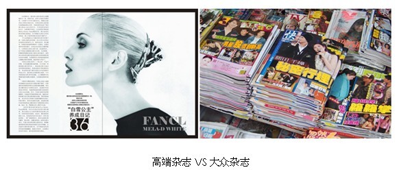 宣傳媒體的選擇也會影響到消費(fèi)者對品牌的看法。香港某周刊的業(yè)內(nèi)人士曾提到,香港不少娛樂周刊都在旗下另起爐灶,出版印刷精美、內(nèi)容高雅的女性雜志,甚至把它們免費(fèi)派發(fā),目的就是為了得到高端美容保養(yǎng)產(chǎn)品和時(shí)尚品牌的廣告。這里也很明顯地涉及到了暈輪效應(yīng)。高端女性品牌明白,讀者在閱讀精美高雅的雜志時(shí),傾向于認(rèn)為里面出現(xiàn)的品牌也是高雅有格調(diào)的;而大眾化的娛樂周刊中的廣告則有可能降低品牌在消費(fèi)者心中的階層印象。