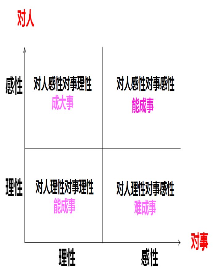 理性和感性與4Q是什么關(guān)系?簡(jiǎn)單對(duì)應(yīng),感性=EQ/AQ/TQ,與人有關(guān)系;理性=IQ,與事有關(guān)系,大成功就是感性和理性的完美結(jié)合,并且運(yùn)用得當(dāng)。我們把感性和理性、對(duì)事對(duì)人,做四象限,可以把人的思維模式分為四類(lèi),見(jiàn)下圖