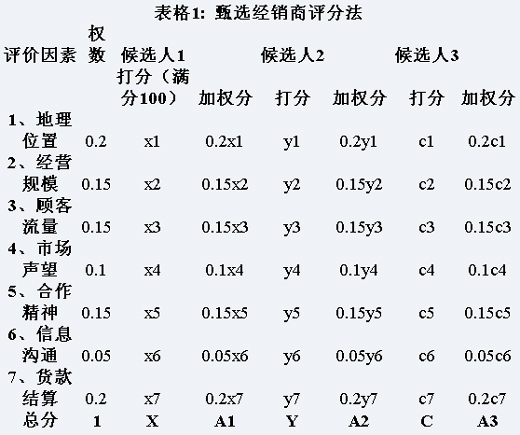 加權(quán)總分中A1、A2、A3,哪個(gè)值大,說明這個(gè)經(jīng)銷商可取性大。
