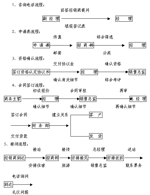 商務(wù)(招商)部是招商工作的執(zhí)行者,與經(jīng)銷商短兵相接,擔負著商務(wù)談判、招商回款等重任,建立、健全客戶檔案,加強各戶管理,保持與客戶間雙向溝通;市場竄貨問題處理;退貨的處理;。一般設(shè)置經(jīng)理、大區(qū)經(jīng)理、協(xié)銷經(jīng)理及商務(wù)助理若干。