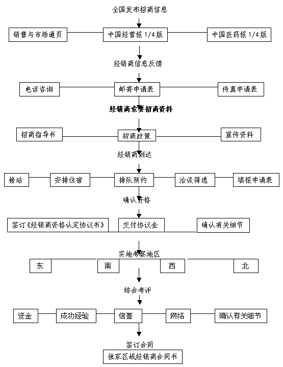 企業(yè)招商是一個系統(tǒng)工程,任何一個環(huán)節(jié)的疏落都會造成企業(yè)資源的浪費,導致招商效果不理想。有好的企業(yè)背景,沒有好的產(chǎn)品不行;企劃做的再漂亮,缺乏到位的執(zhí)行也不行;有好的方案,沒有好的解讀和培訓也不行;廣告氣勢再大,因為電話溝通技巧不夠也會大打折扣。筆者10年醫(yī)藥企業(yè)高層管理經(jīng)驗中也有過成功的招商歷程,總結(jié)為成功招商九步A、組建強有力的招商隊伍;B、確定獨到招商模式和策略;C、如何擬定招商方案、合同、舉辦招商會?D、包裝、策劃獨特產(chǎn)品賣點;E、談判技巧與細節(jié);F、如何培訓經(jīng)銷商;G、如何拜訪經(jīng)銷商?H、如何量化考核經(jīng)銷商;I、如何層級管理經(jīng)銷商渠道。愿與大家分享……