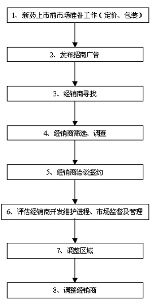 當(dāng)前,國內(nèi)藥企的營銷部門一般均設(shè)有招商部,招商部通過如圖1所示的流程完成招商銷售工作,地區(qū)經(jīng)銷商主要工作流程如圖2所示: