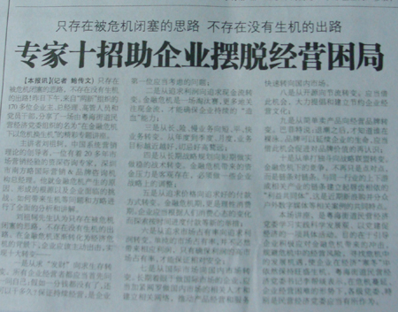 08年12月28日,《深圳特區(qū)報(bào)》報(bào)道劉祖軻“十招助企業(yè)擺脫經(jīng)營(yíng)困局”。