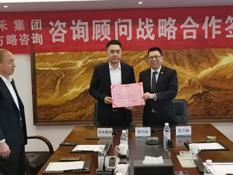 2021年11月20日,為進(jìn)一步推動集團(tuán)高質(zhì)量規(guī)模化發(fā)展戰(zhàn)略,重慶親禾集團(tuán)與南方略咨詢在親禾集團(tuán)總部正式簽訂《咨詢顧問戰(zhàn)略合作協(xié)議》,南方略咨詢董事長劉祖軻老師、副總裁王清華老師與親禾集團(tuán)董事長鄧華先生、副總裁左久林先生等兩家公司的主要領(lǐng)導(dǎo)集中到場,共同參與和見證了此次合作。