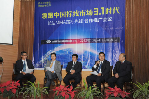 “長達MMA路標(biāo)先鋒”系列雙組份標(biāo)線涂料為長達公司全力推出和打造的拳頭產(chǎn)品。具備超強更持久、醒目更生動、耐候更穩(wěn)定、附著更優(yōu)異、施工更便捷、適用更廣泛、低碳更環(huán)保等顯著特征。為了更好地打開新產(chǎn)品推廣的局面,“技術(shù)引領(lǐng)安全,靈感源于自然——領(lǐng)跑中國標(biāo)線市場3.1時代”,山西長達交通設(shè)施有限公司長達MMA路標(biāo)先鋒合作推廣會議日前于山西財經(jīng)大學(xué)國際學(xué)術(shù)交流中心隆重舉行。世界500強贏創(chuàng)工業(yè)(Evonik Industries)領(lǐng)導(dǎo)、南方略公司領(lǐng)導(dǎo),長達公司領(lǐng)導(dǎo)、新老客戶、以及相關(guān)部門同仁共近200人齊聚一堂,分享經(jīng)驗、交流心得,共同回首長達創(chuàng)立16年以來走過的路程、取得的業(yè)績,并共同描繪長達MMA路標(biāo)先鋒未來的發(fā)展前景。