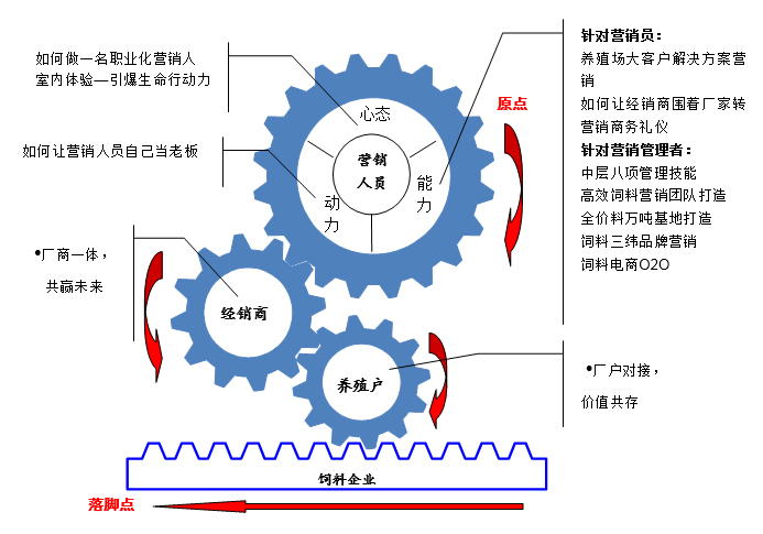 系統(tǒng)構(gòu)建:經(jīng)過(guò)大量案例總結(jié)提煉出來(lái)的營(yíng)銷培訓(xùn)體系深度契合飼料企業(yè)的現(xiàn)實(shí)需求,不但從點(diǎn)上突破更是長(zhǎng)期系統(tǒng)構(gòu)建;