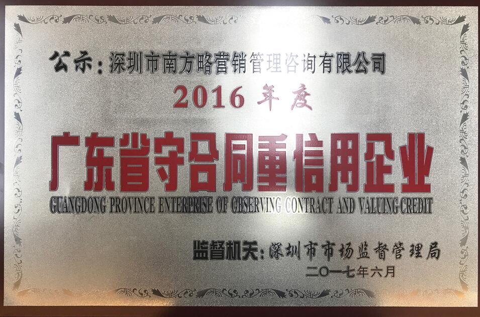 熱烈祝賀南方略被評選為2016年度廣東省守合同重信用企業(yè)!