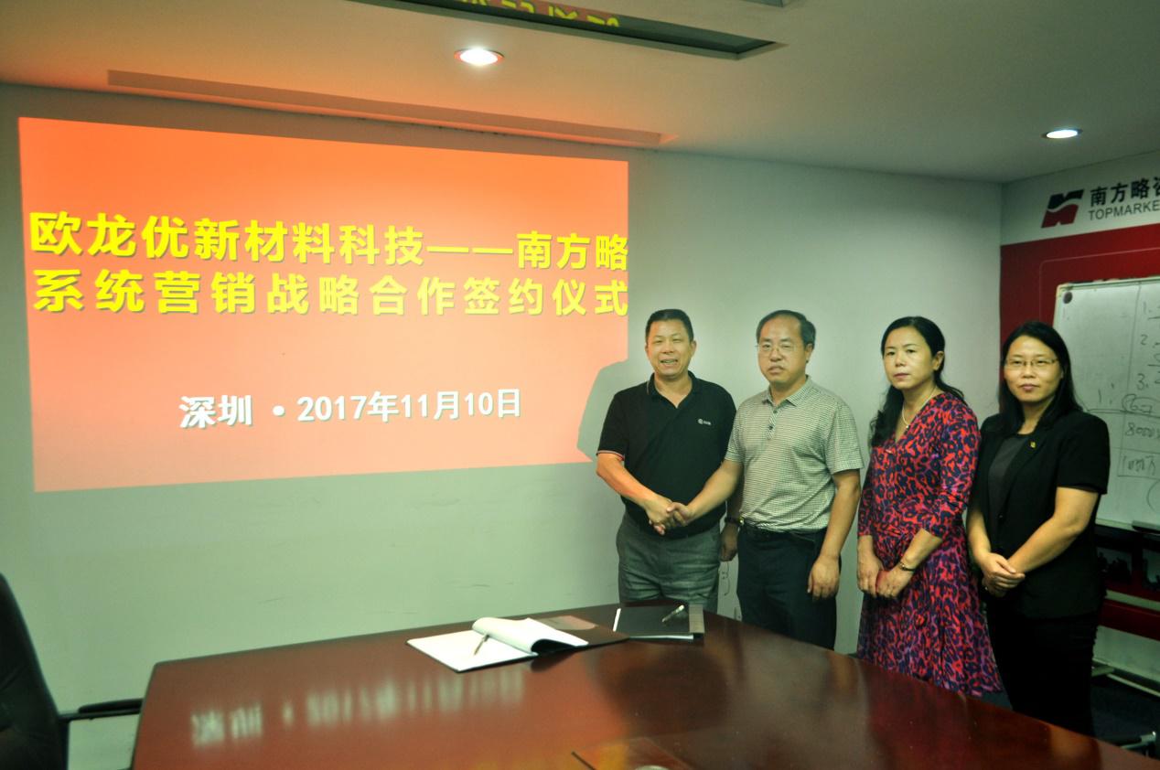 2017年11月10日,深圳市歐龍優(yōu)新材料科技有限公司與南方略國際營銷&品牌咨詢機(jī)構(gòu)系統(tǒng)營銷戰(zhàn)略合作咨詢項(xiàng)目在深圳正式啟動。